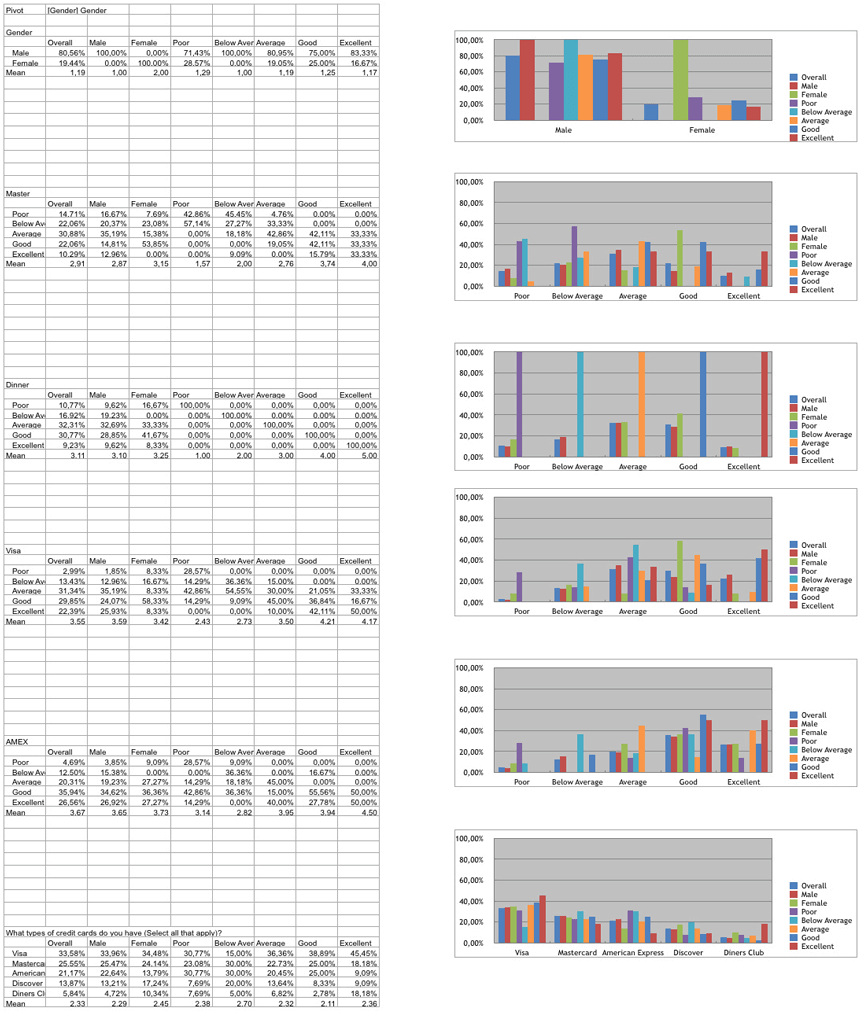 The MS Excel Export produces a multi-tab .xls file that includes the raw data dump as it exists in our database. The report also includes all of the frequency data from the online summary report, as well as the frequency data for any groups that have been defined in the comparison report.